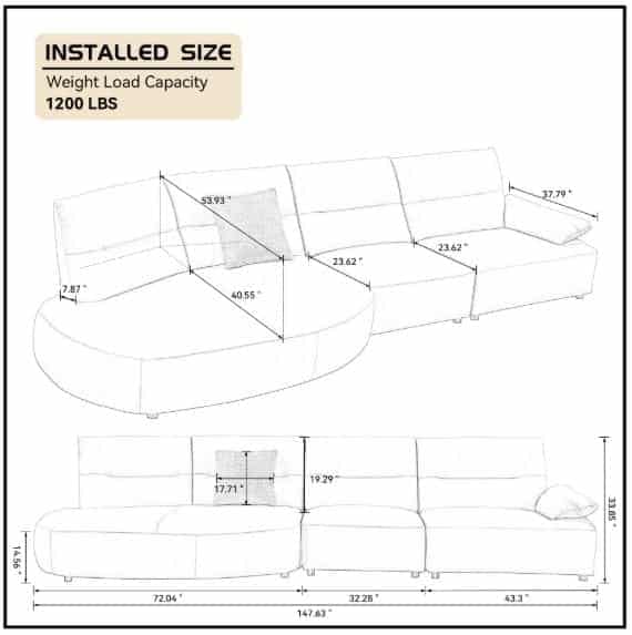 Ghế sofa cong thoải mái Ghế sofa cong đẹp mắt có thể hỗ trợ tốt cho bạn. Ghế ngồi bằng da mềm mại và thân thiện với môi trường mang đến sự thoải mái tối đa cho hông của bạn, cho phép bạn đắm mình trong nhiều giờ thư giãn. Ghế sofa có thiết kế cong đặc biệt, sự thanh lịch cong kết hợp với gu thẩm mỹ vượt thời gian. Không giống như hầu hết các loại đệm mút nguyên chất, mỗi chiếc đệm của chúng tôi đều có hệ thống lò xo tích hợp, mang lại khả năng hỗ trợ tốt và lâu dài, không dễ bị xẹp.