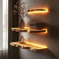 Kệ gỗ cạnh nổi là giải pháp lưu trữ hiện đại, đẹp mắt trông như đang nổi trên tường. Nó thường được làm bằng gỗ và có thể được sử dụng để trưng bày các vật dụng trang trí hoặc cất giữ sách vở và các vật dụng khác.
